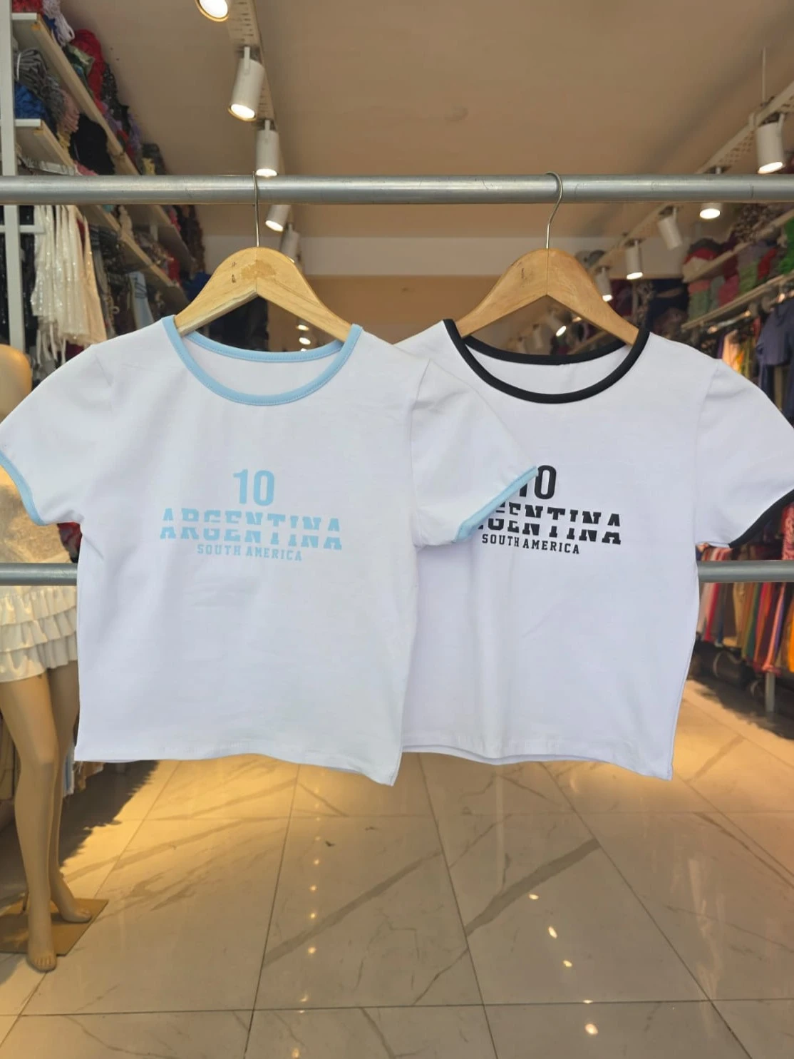 Remera con ribete en manga y estampado