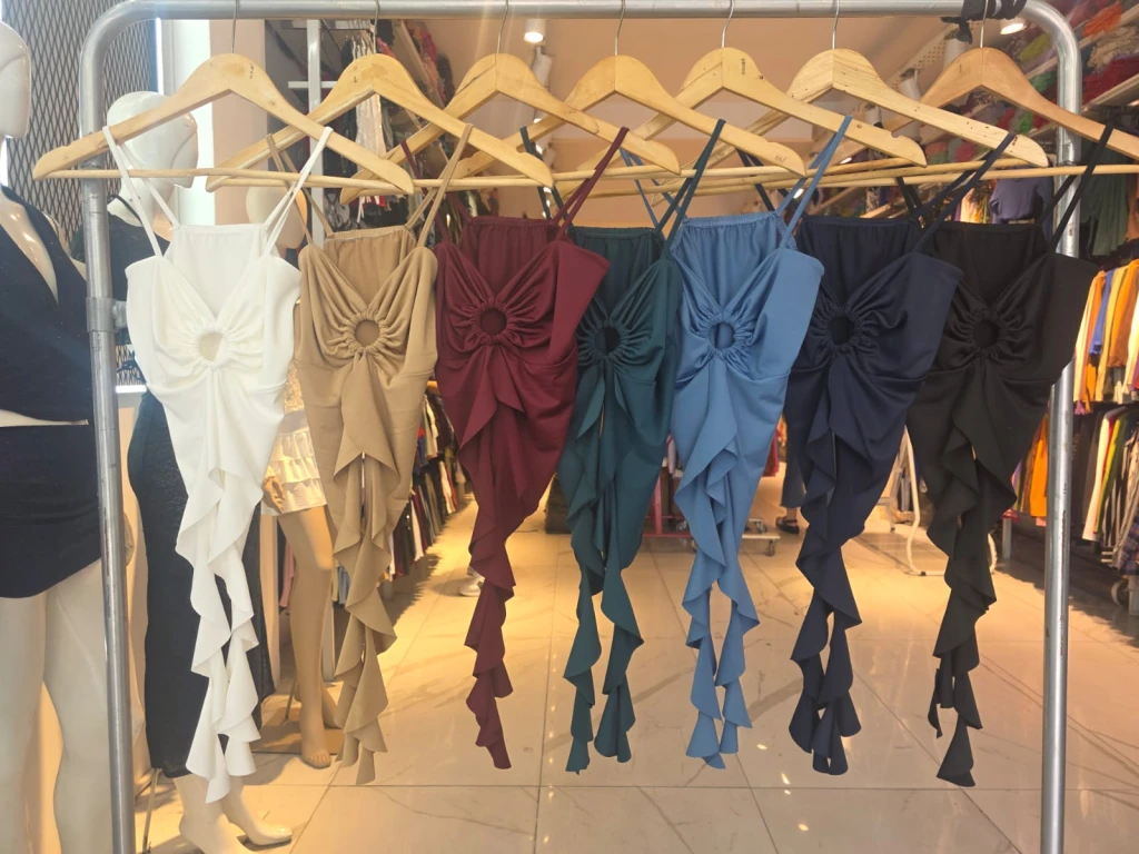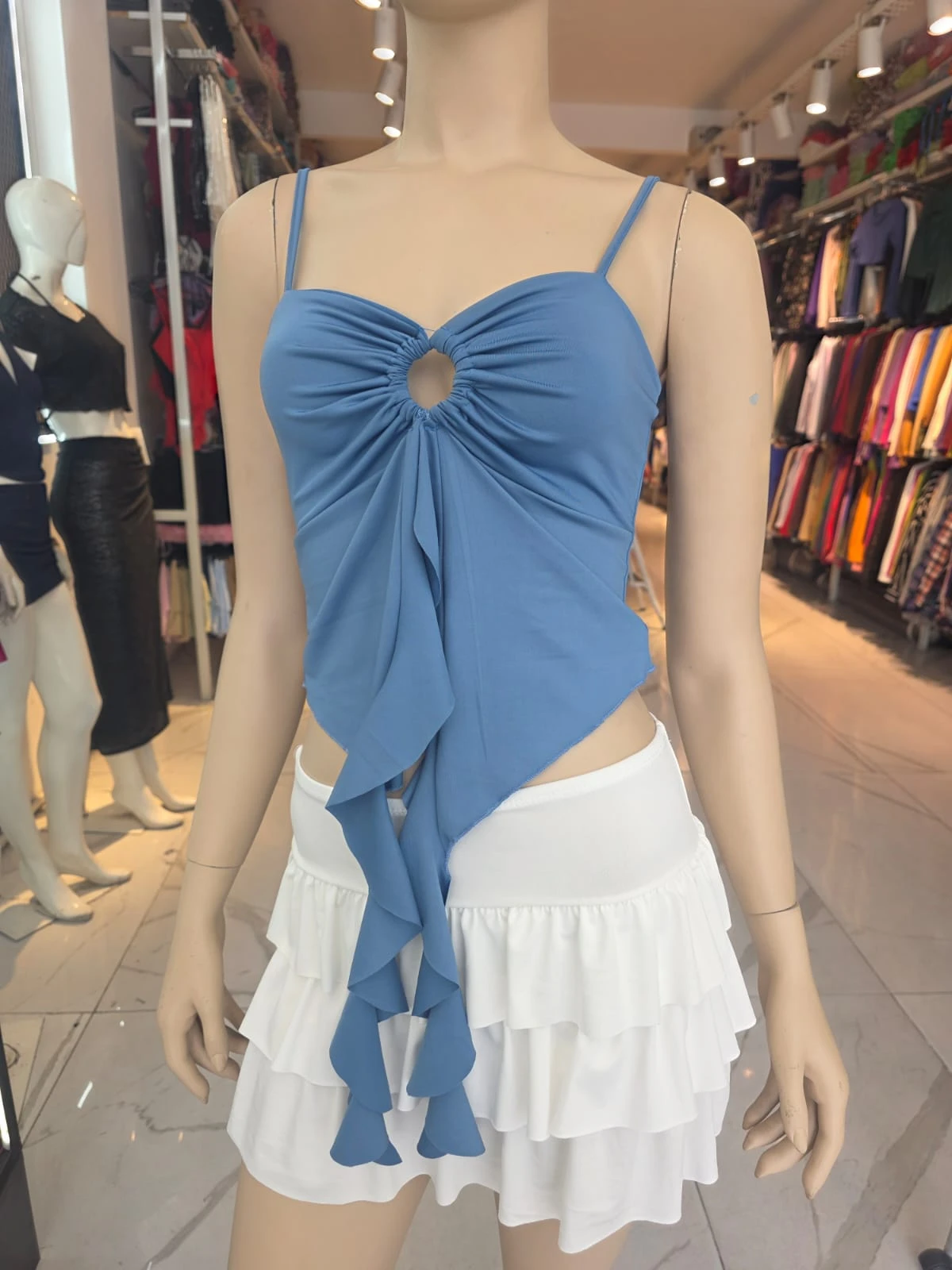 Top con bretel, aro en el medio y volados largos
