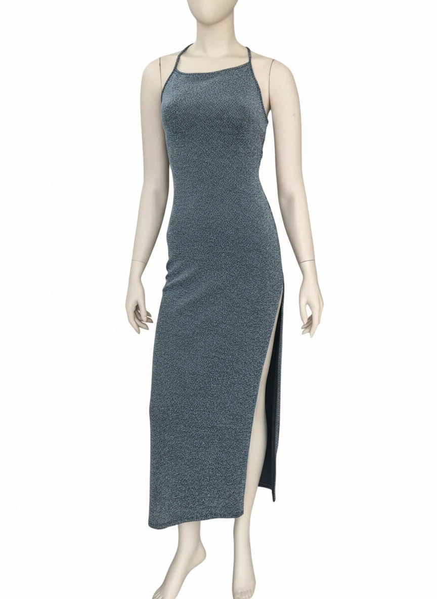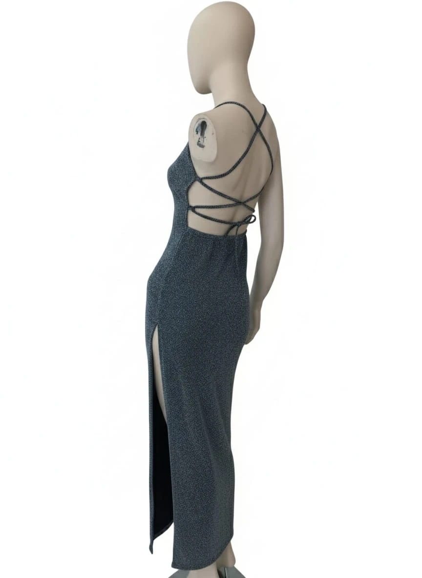 Vestido largo con tajo y tiritas cruzadas en la espalda